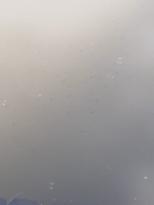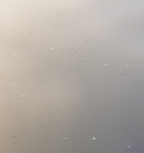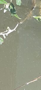 Od kilku dni na naszym stawie nastąpił wylęg bliżej nie określonych ryb z naszego stawu. Poniżej parę zdjęć, które udało się zrobić. Rybki pływają przy zatopionym drzewie po lewej stronie stawu za molo, oraz po prawej stronie stawu wzdłuż molo przy wychodzących z pod molo gałęziach.