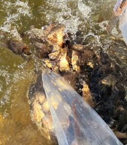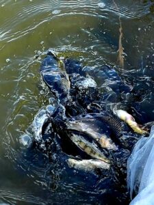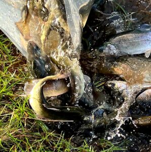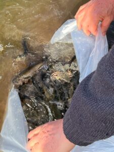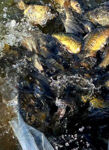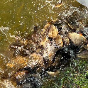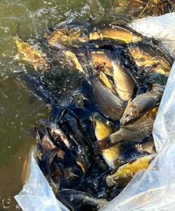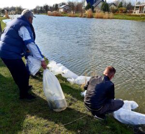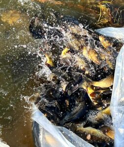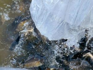 W dniu 14.04.2023 dzięki dodatkowej zrzutce pieniężnej kilku naszych kolegów przeprowadzono dorybienie stawu drobną rybą która została przywieziona z mazur ze sprawdzonego miejsca z którego już w 2021 braliśmy ryby.