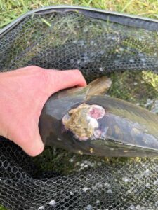 W związku z pojawiającymi się przypadkami chorych ryb na naszym stawie (uszkodzenia mechaniczne powłok skórnych i infekcja), w dniu 8 kwietnia 2024, zostało podane rybom lekarstwo. Lekarstwo zostało rozprowadzone równomiernie po całym stawie za pomocą łódki. Prosimy kolegów wędkarzy o wstrzymanie się z zabieraniem ryb ze stawu przez okres około dwóch tygodni. Spożywanie ryby leczonej w kwarantannie tylko i wyłącznie na własną odpowiedzialność.