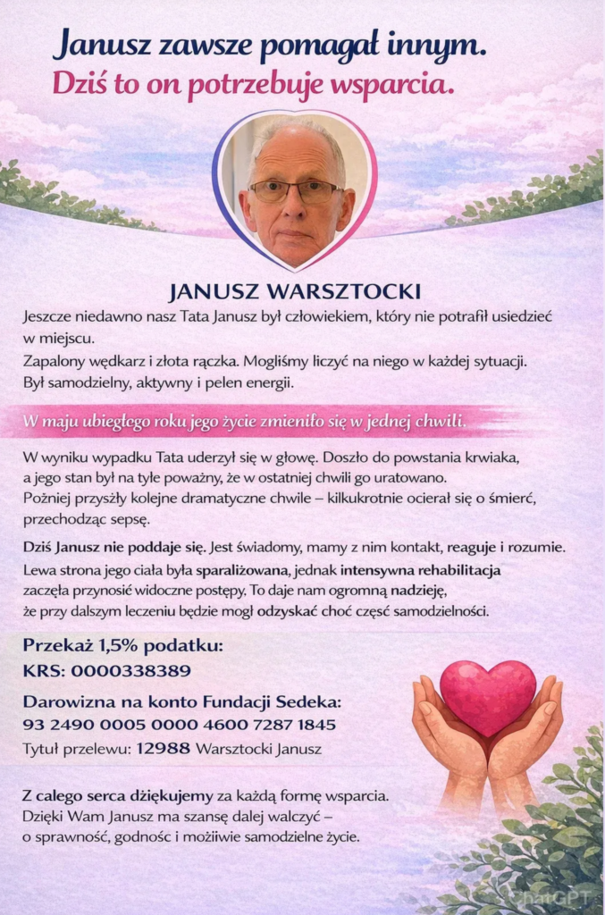 Janusz Warsztocki to wieloletni członek naszego klubu, pasjonat wędkarstwa i człowiek, na którego zawsze mogliśmy liczyć. Dziś to on potrzebuje naszej pomocy.